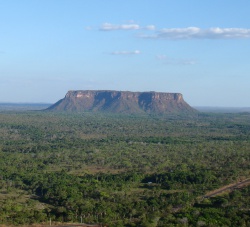 O domínio morfoestrutural "Planalto Dissecado do sul da Amazônia" é caracterizado por um relevo ondulado, de alongados espigões, escarpas íngremes e topos ligeiramente planos, cujas cotas situam-se entre 200 e 300 metros, tendo em geral vales em forma de 'V" e vertentes desnudas. Assim, a vegetação nesse conjunto de pequenas serras é, em geral, constituída de mata rala, que passa a uma vegetação de grande porte quando as vertentes começam a perder declividade. Domina a Floresta Ombrófila Aberta Submontana (46%), apresentando ainda: Vegetação de Contato Savana/Floresta Ombrófila (18,3%), Savana Arborizada (8,8%), Savana Densa (8,05%), Savana Parque (7,8%), Floresta Ombrófila Densa Submontana (6%), Savan Gramínea-Lenhosa (1,6%), e outras.